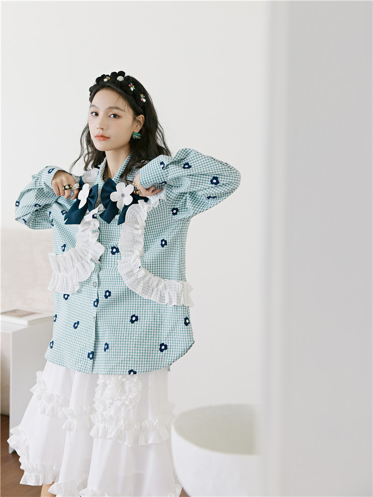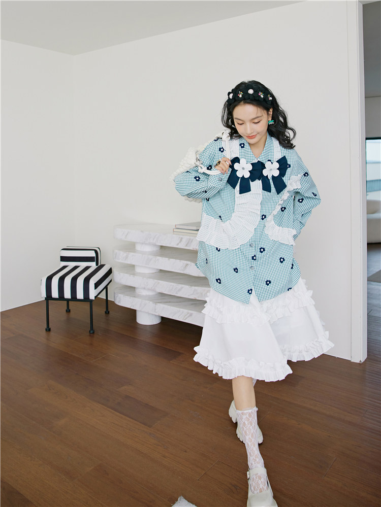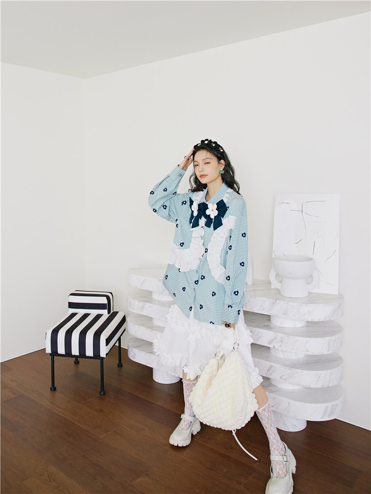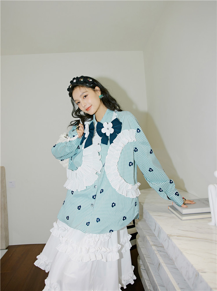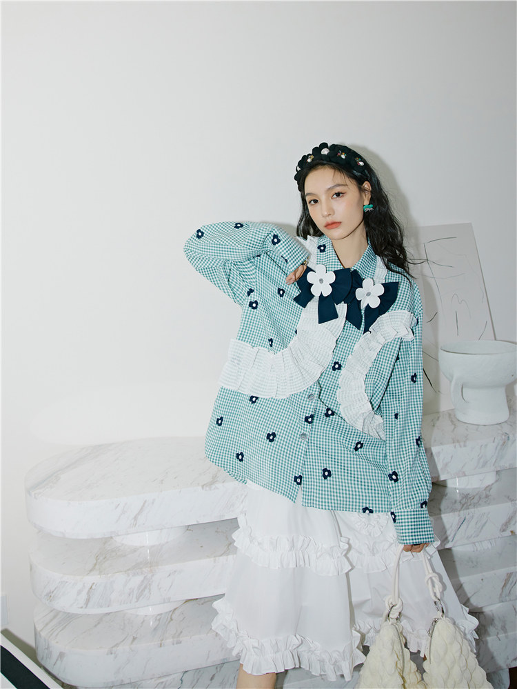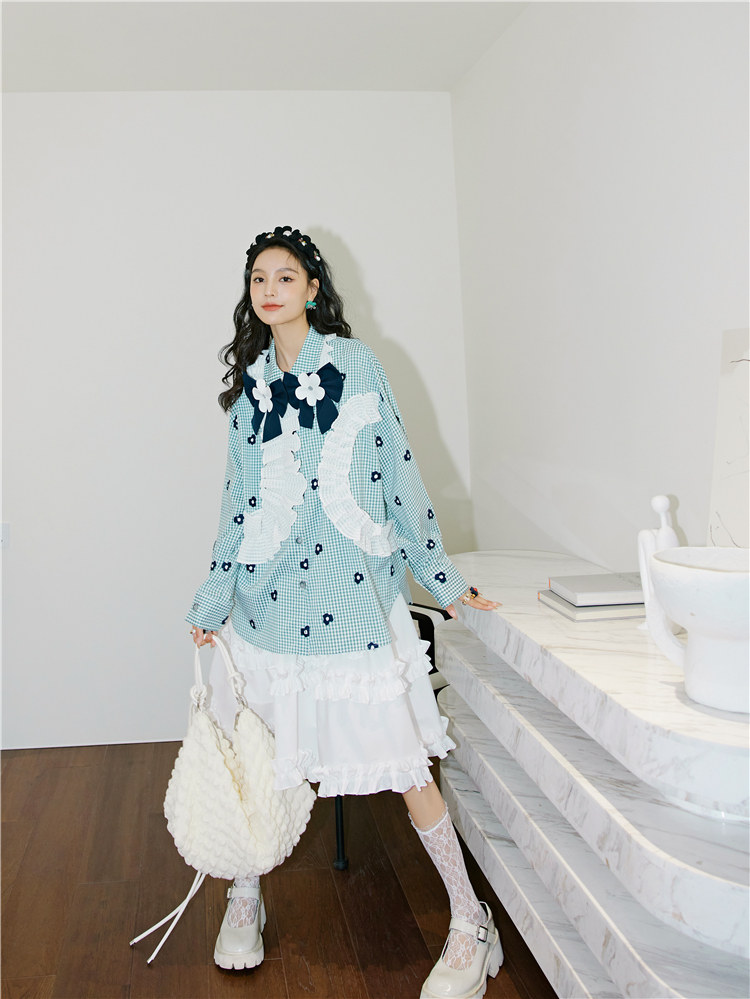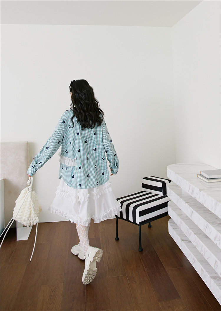 加上小花朵绣花的点缀 丰富了视觉的同时也轻松区别了常规格子衫