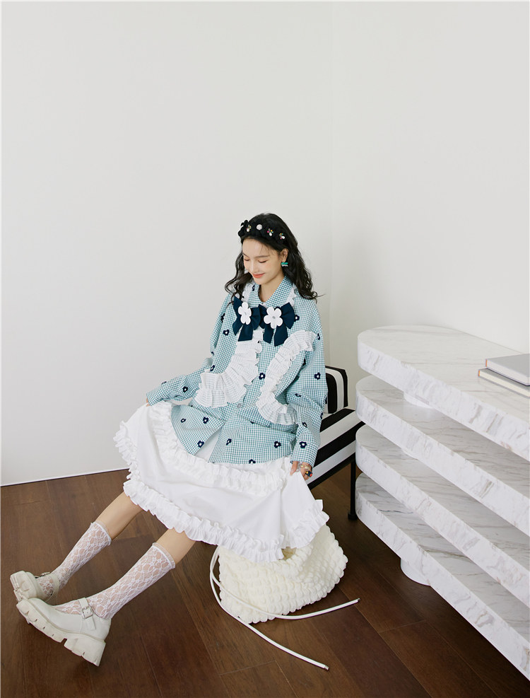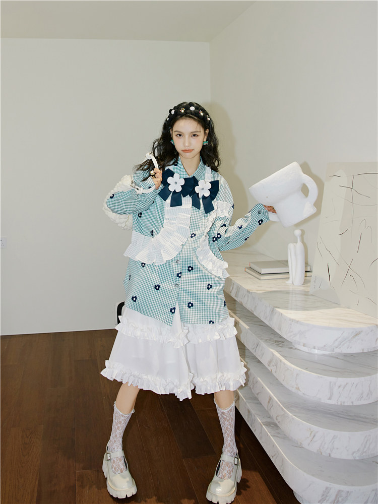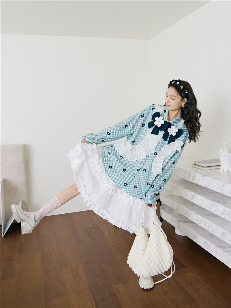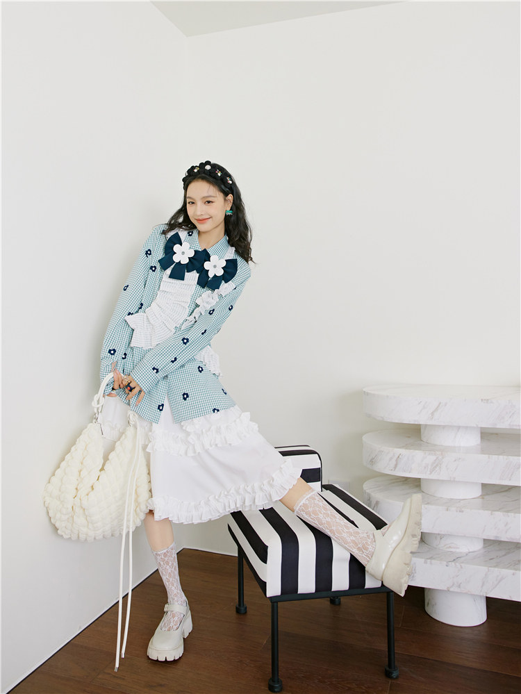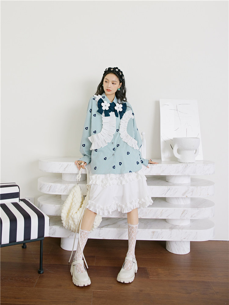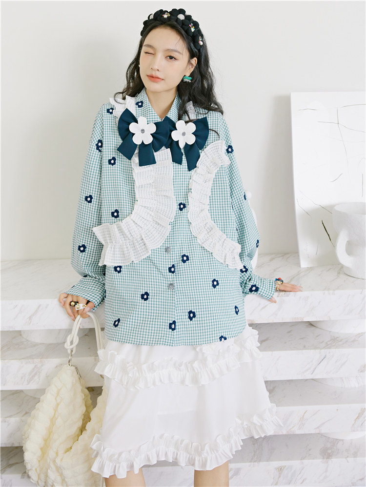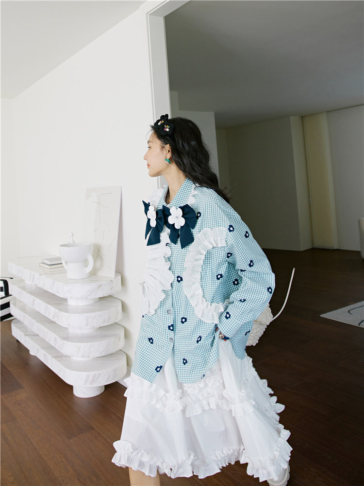 加上小花朵绣花的点缀 丰富了视觉的同时也轻松区别了常规格子衫