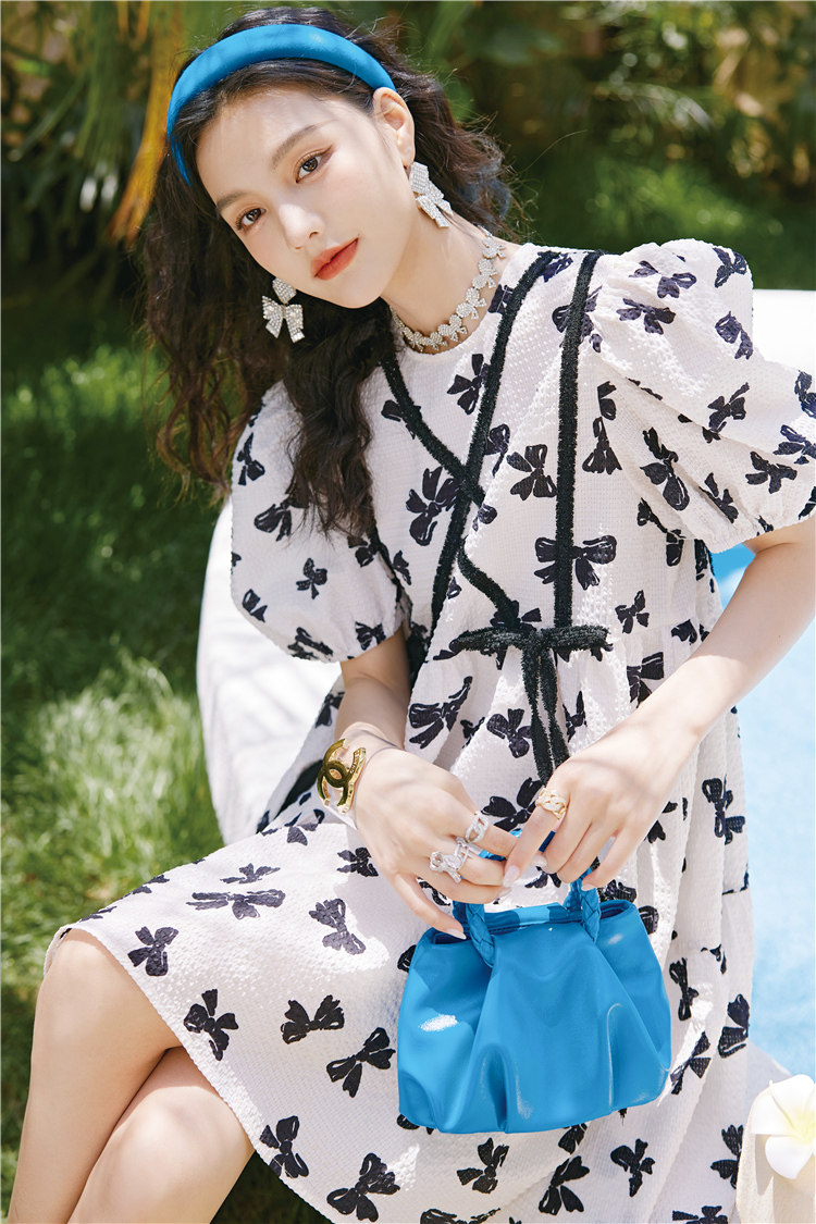 采用特别的蝴蝶结提花面料