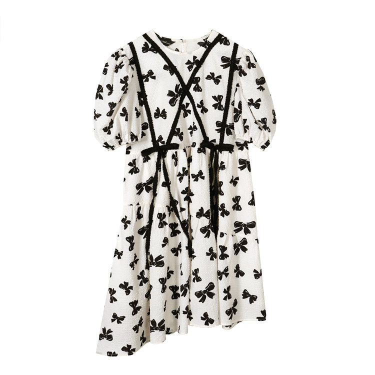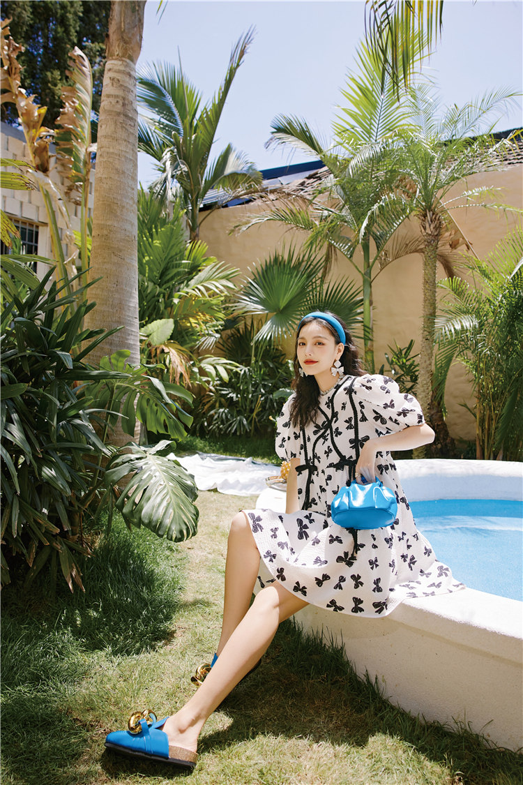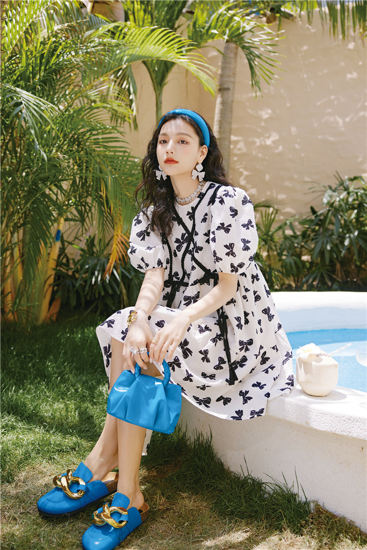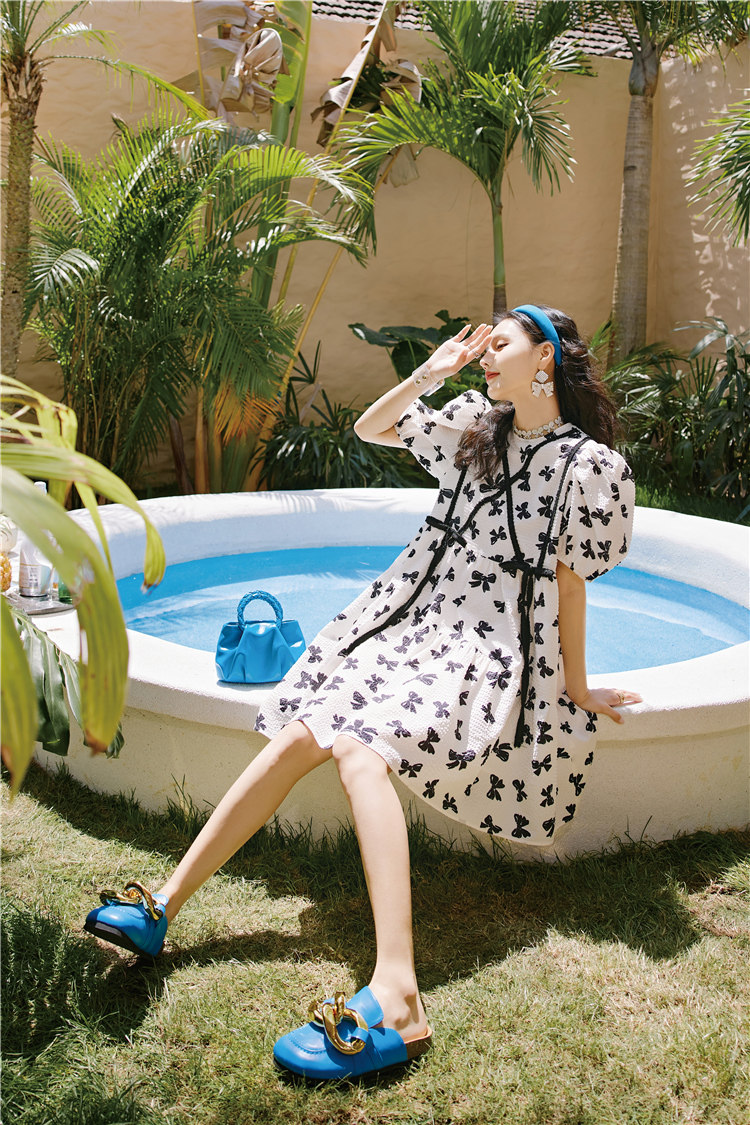 下摆做了斜摆的设计, 提升了这件连衣裙的视觉层次感
