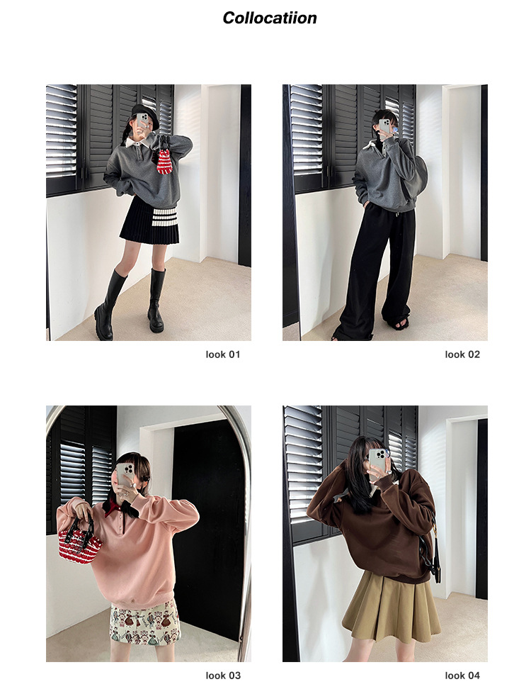 慵懒加绒polo领套头卫衣