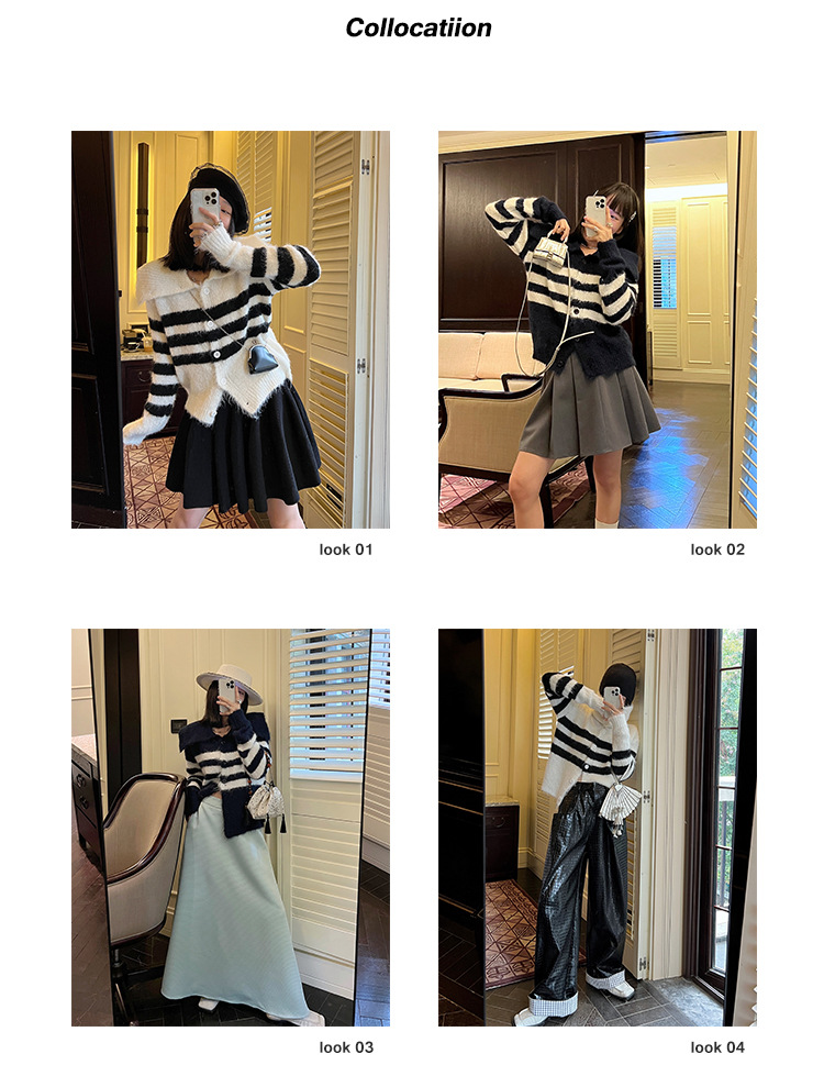撞色条纹毛衣的标签,温柔治愈舒适